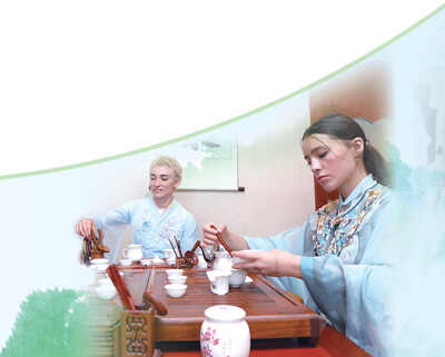 2024年4月,新西兰惠灵顿东方女子中学的学生在北京师范大学实验华夏女子中学体验茶艺课。新华社记者 侯 俊摄