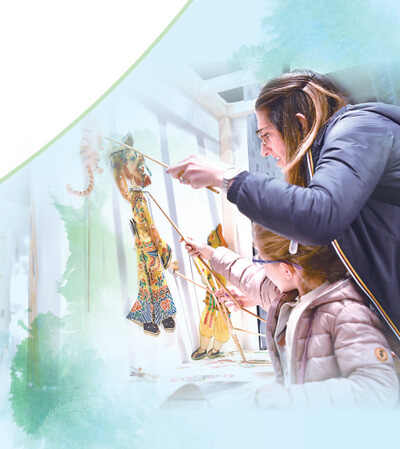 参观者在意大利佛罗伦萨举办的国际手工艺展览会上体验中国皮影文化。新华社记者 金马梦妮摄