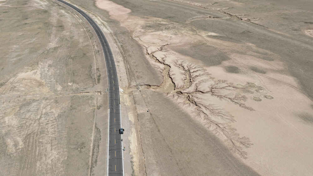 在西藏那曲市,317国道的2442里程碑附近有一处被称作“天空之树”的神奇景观。由于此处地势条件特殊,流水冲刷大地,进而形成从空中俯瞰如大树一般的痕迹。