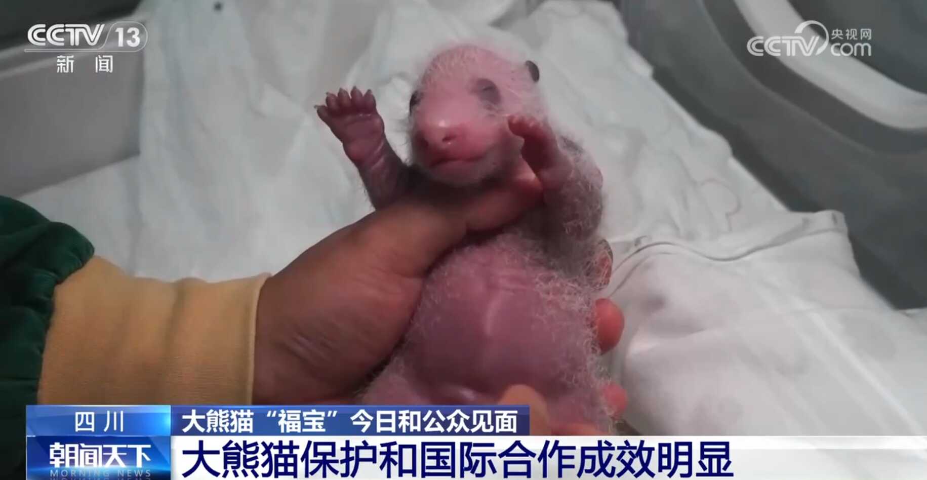 中国大熊猫保护研究中心饲养员徐翔称:“轻轻拍拍它鼻子,用手尖轻触,然后帮它挠挠背。希望它亮相之后,能够健健康康、快快乐乐和大家见面,把最好的一面展现给大家。”