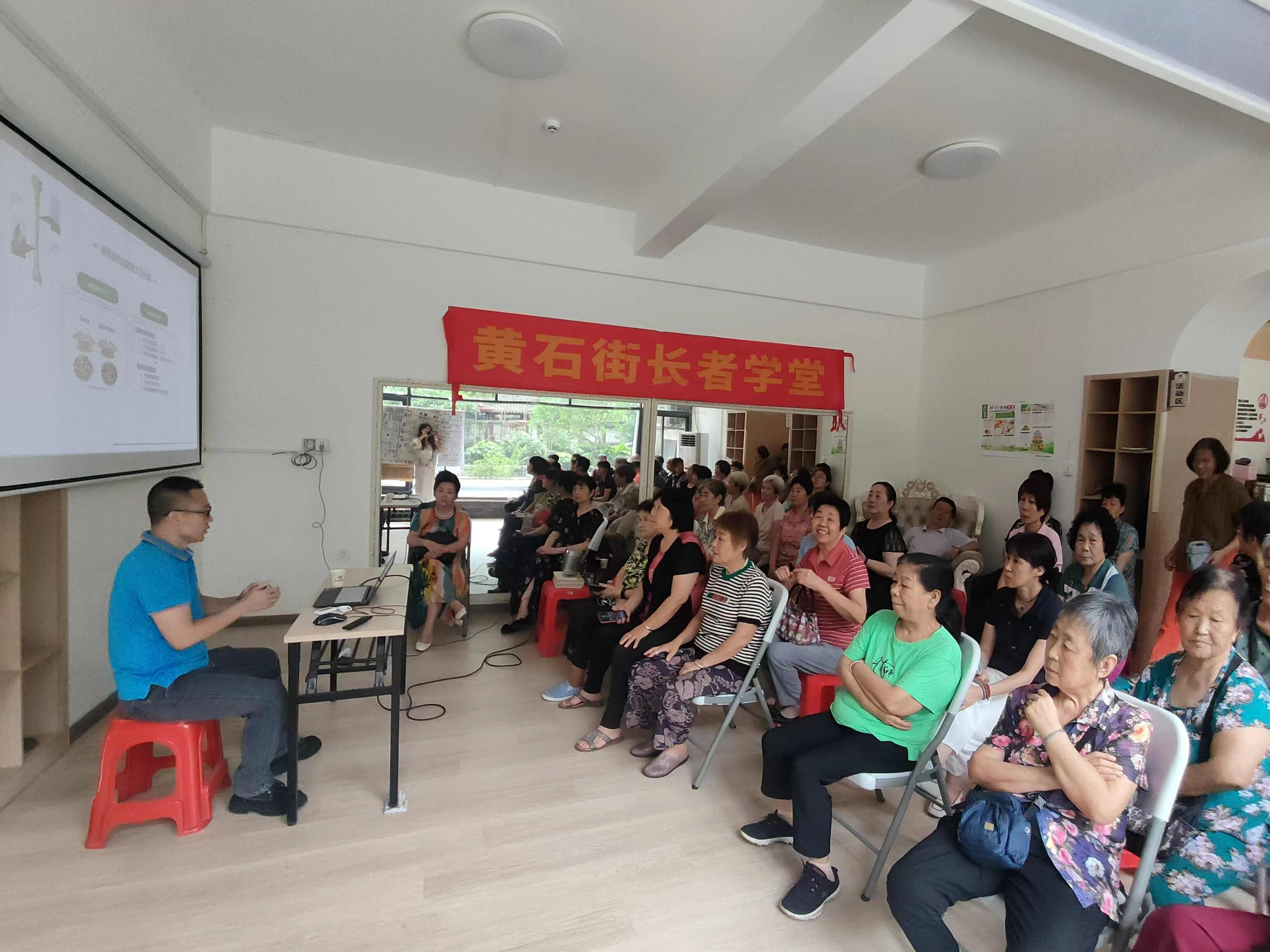 据介绍,荷塘月色社区常住人口约7000人,商业繁华,社区资源丰富,辖区内老年群体队伍日益庞大,其中60-70岁老年人约350人,其教育需求也日益凸显。为此,荷塘月色社区居委会多次深入上门联系群众,走访交流,形成开办社区长者学堂建议,得到了黄石街党工委、办事处的大力支持,并由街公服办牵头,多次联合开展协调会,向居民群众发放调查问卷,了解长者的教育需求,整理分析长者不同生命阶段的特征,为选取相应的课程内容提供依据。