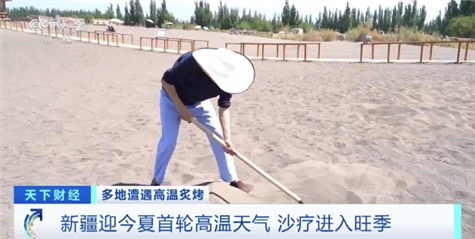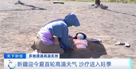 从6月10日开始,新疆大部分地区迎来了入夏以来首轮高温天气,部分地区的气温升至40摄氏度以上。在吐鲁番,沙疗产业迎来了旺季。