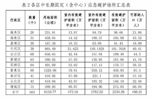 征求意见稿明确,要构建能够应对自然灾害为主兼顾其他突发事件的应急避护场所空间体系,建设适应广州市经济社会发展的应急避护设施。规划至2035年全市室内外有效避护总面积不少于3080万平方米,其中室内有效避护面积按不少于616万平方米配置。2035年全市应急避护场所人均面积达到2平方米。