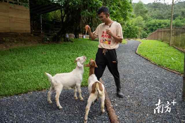 泰康民宿的萌宠乐园里,工作人员正在喂养动物。