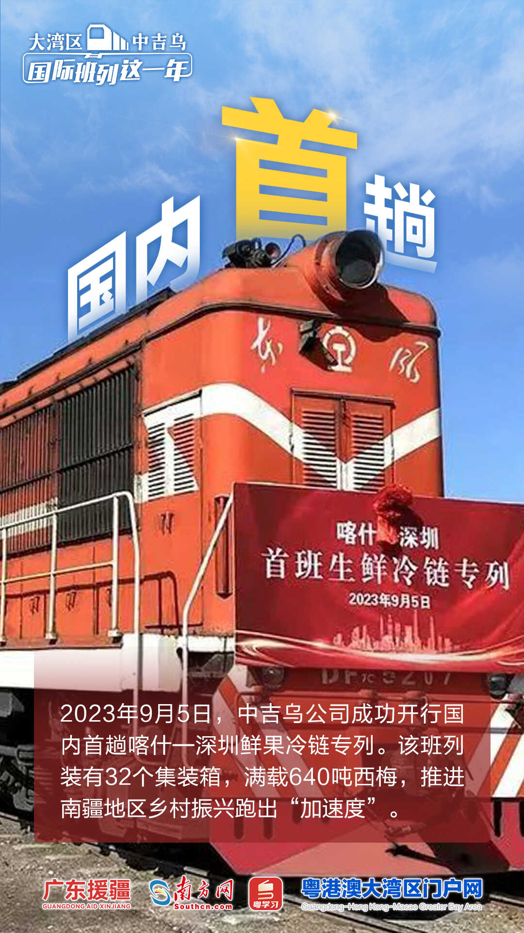 在广东援疆的大力推动下,2023年7月4日,由广物控股集团、深圳港集团运营的新疆中吉乌多式联运有限公司(以下简称“中吉乌公司”)粤港澳大湾区首列“中吉乌”公铁联运国际班列发车,一方面密切了丝绸之路经济带核心区和粤港澳大湾区经贸往来,另一方面为即将开工建设的中吉乌铁路运营项目打好基础。