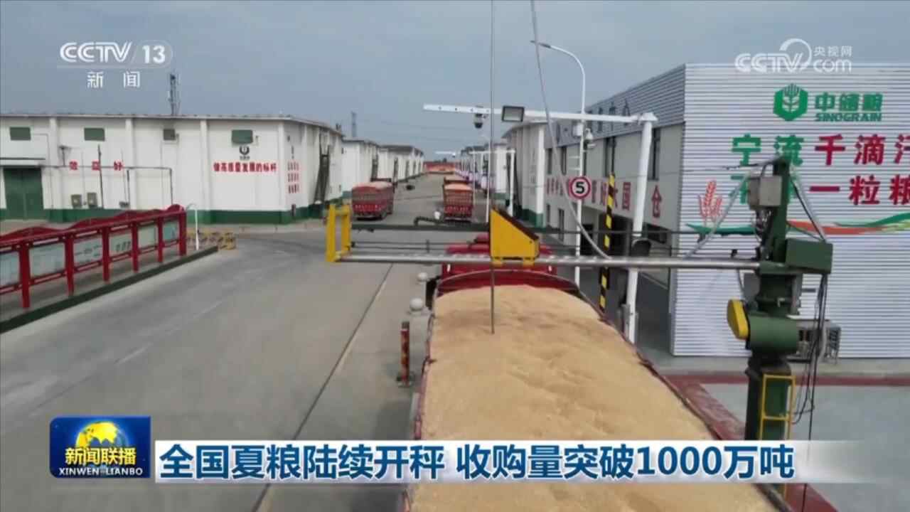 央视网消息(新闻联播):国家粮食和物资储备局6月13日最新发布,目前夏粮收购开局良好,收购量突破1000万吨。调度数据显示,目前河南超过300万吨,安徽、江苏收购量超200万吨,湖北、山东、河北等地,收购正在加快。