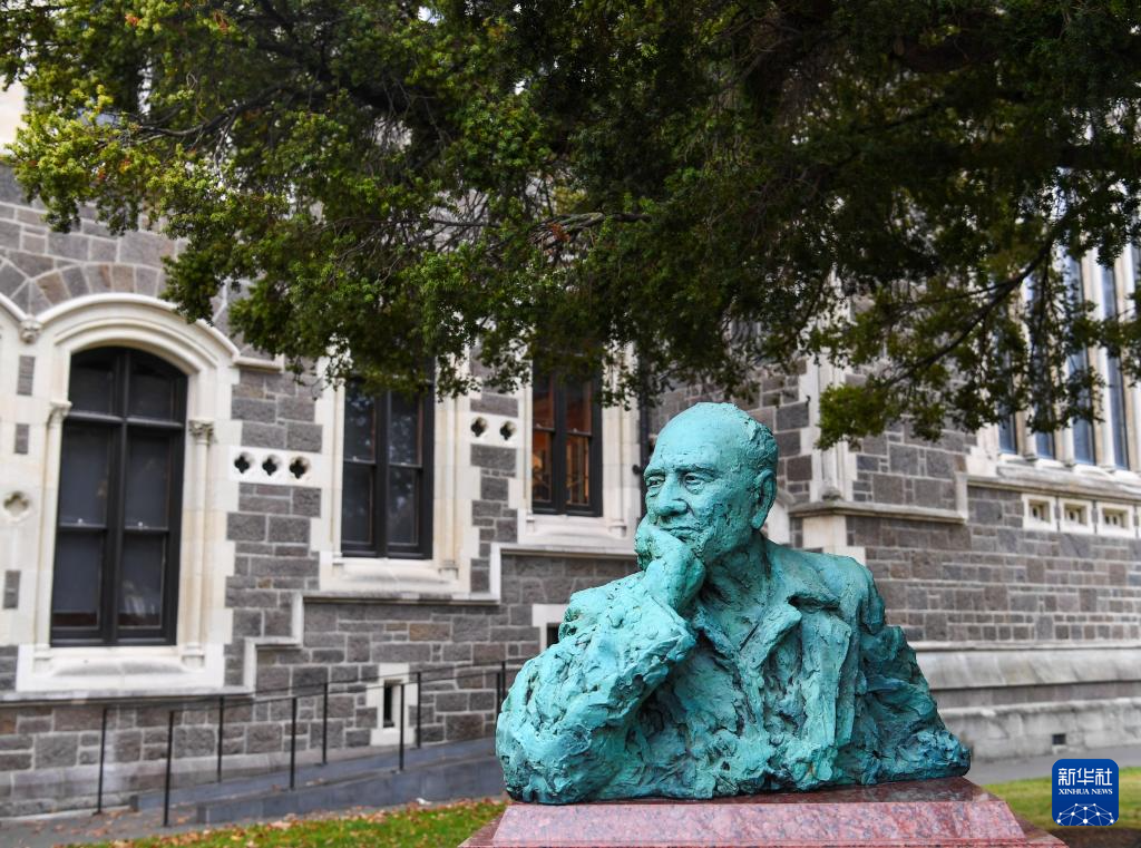 这是5月24日新西兰克赖斯特彻奇艺术中心拍摄的路易·艾黎塑像。新华社记者 郭磊 摄