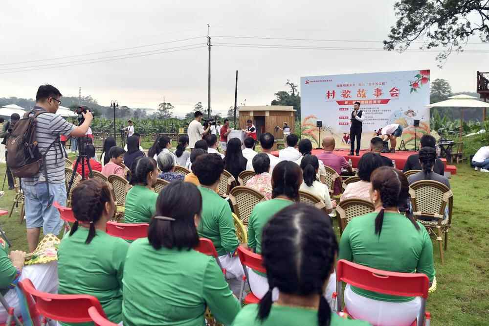 活动中,增城首场村歌故事会开讲。组织热爱乡土文化的乡贤挖掘整理本村村史进行创作,将抗日先烈郑贵章、增城旧八景曲水流杯、凤鸣岗、“一村一品”蜂蜜等五星村独有元素和北绕线等对五星村发展有重要意义的人、物、事写进村歌;由本村村民担起唱歌与伴舞的主角,用充满乡土气的展演形式表达对家乡深切的情与爱……在五星村村歌的背后创作故事里,一个个动人的画面跃然纸上。