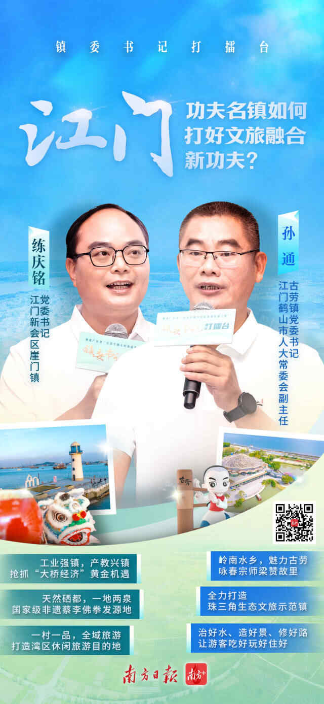 古劳镇以咏春威名远扬,崖门镇以蔡李佛闻名四海。本期“镇委书记打擂台”节目走进中国侨都江门,对话古劳镇、崖门镇的“百千万工程”施工队长,看两座功夫名镇如何加力提速推进“百千万工程”,闯出文旅融合新路子。