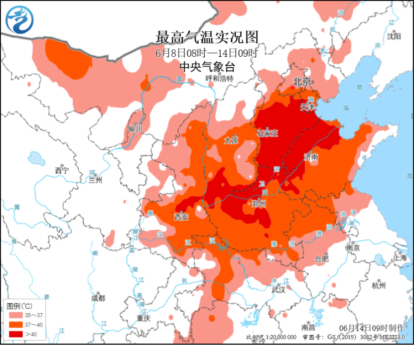 自6月8日开始,北方今年以来最强高温过程可谓耐力持久,其中山西、山东、河南、河北共有15个国家站日最高气温突破历史极值,最高气温出现在河南焦作43.4℃,追平新疆吐鲁番东坎。