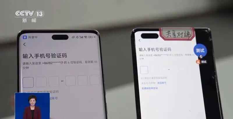 工作人员将有防护措施的手机和没有防护措施的手机分成两组,在有防护措施手机的App上注册时,在跟它共享屏幕的手机上不会显示用户短信验证码;而在没有防护措施的手机上进行同样操作时,用户的验证码就同时出现在了跟它共享屏幕的另一台手机上。