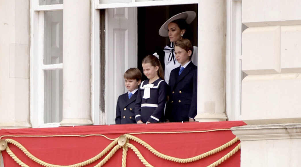 当天,英国王室成员还齐聚白金汉宫阳台,与民众见面。凯特王妃也在白金汉宫阳台亮相。王室成员一同观看飞行表演。