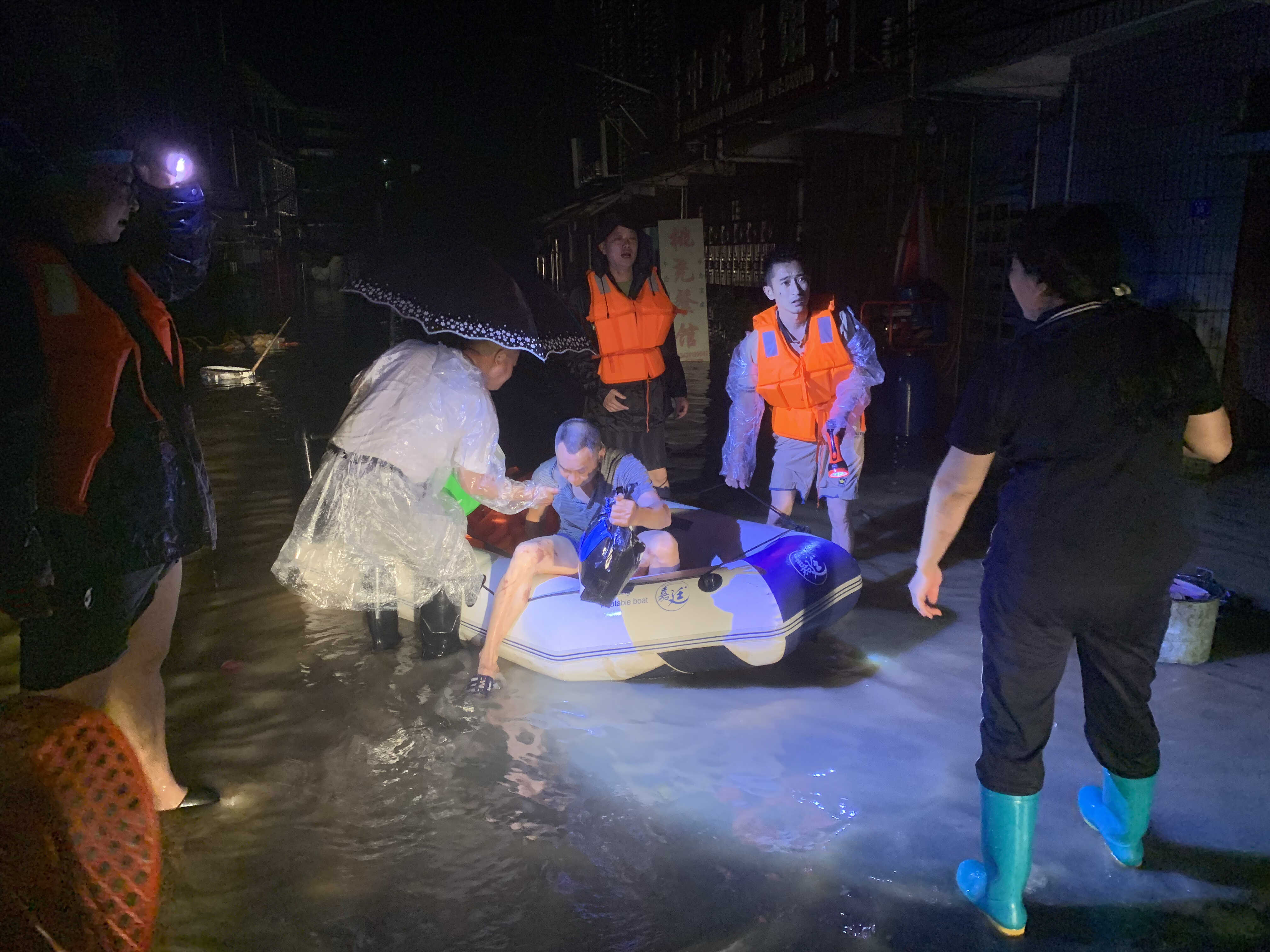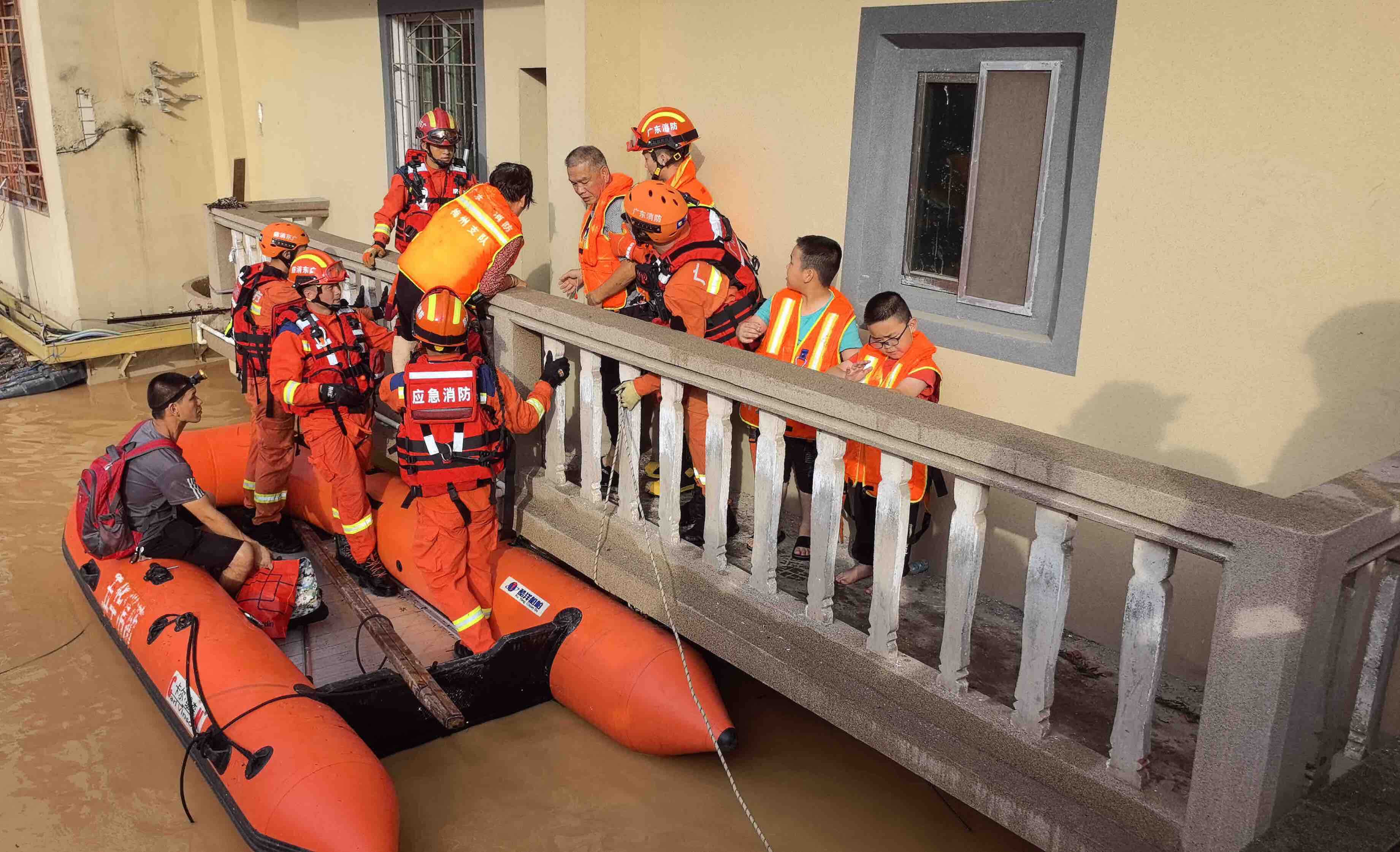 面对灾情,16日14时12分,梅州市消防救援支队立即启动抗洪救援预案,调派平远、蕉岭、特勤、梅江、梅县、兴宁等救援力量共29车174人第一时间赶赴现场,支队全勤指挥部率水域救援专业队随警出动。省消防救援总队调派汕头、潮州、揭阳3个水域救援专业队共150人到场增援。在过去的一夜,橙色身影通宵达旦,奋战在抗洪救援第一线。