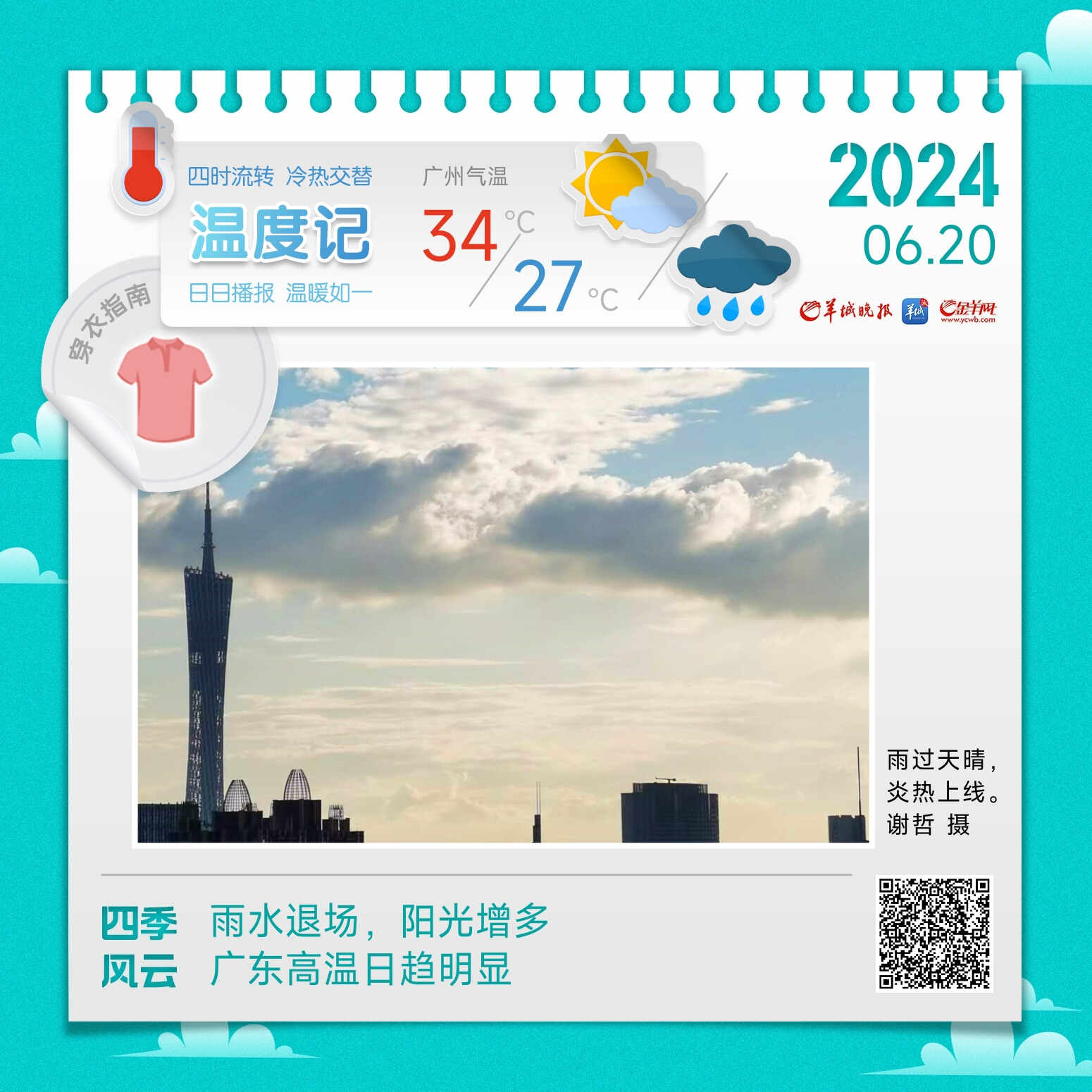 20日,韶关、清远多云到阴天,有(雷)阵雨,局部大雨,其余市县多云到晴,有分散(雷)阵雨。最高气温:粤西和珠江三角洲34~36℃,其余大部分市县32~34℃。