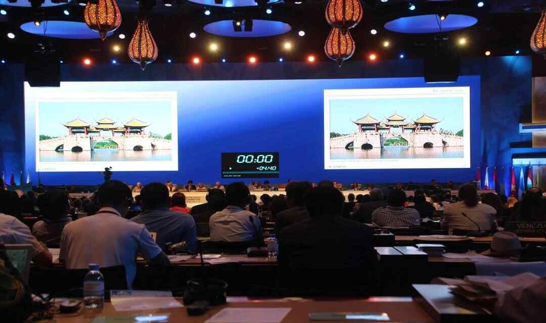 当地时间6月20日下午4点开始,第38届世界遗产大会开始申报项目的审议。当地时间6月21日中午12点,大会主席宣布上午议程基本结束。就在大家以为下午第一个项目会是大运河项目时,大会主席宣布,下午有几个国家的项目提出要提前审议,如果这样,当天就没有时间审议大运河项目了。北京时间22日下午2:30,多哈当地时间22日上午9:30,大运河项目终于开始审议了。“ICOMOS专家米歇尔代表ICOMOS介绍大运河项目,大运河项目的PPT做得实在太漂亮了,淮扬运河、五亭桥等大运河的图片简直太赞了,我们一下子感到信心爆棚。”