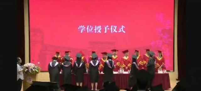 相关视频显示,19日下午,复旦大学法学院毕业典礼在江湾校区举行。在学位授予仪式环节,一男生走上台,突然向站在右二位置的老师挥了一拳,该老师的礼帽被打落,旁边的老师和学生也受到惊吓。