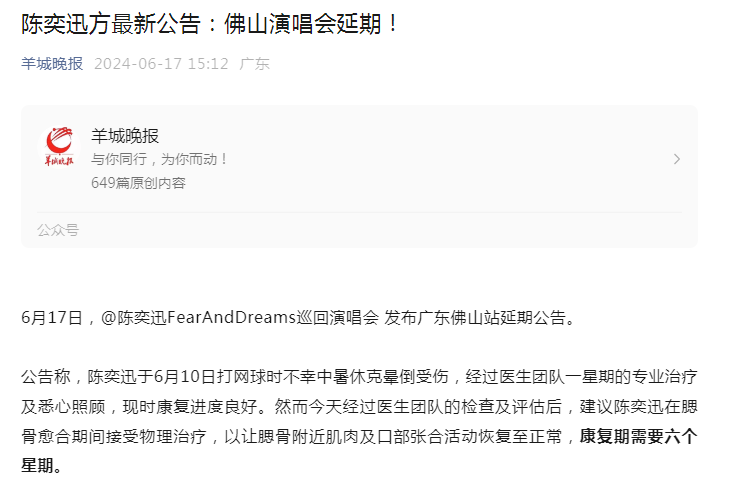 近期陈奕迅也因生病取消演唱会