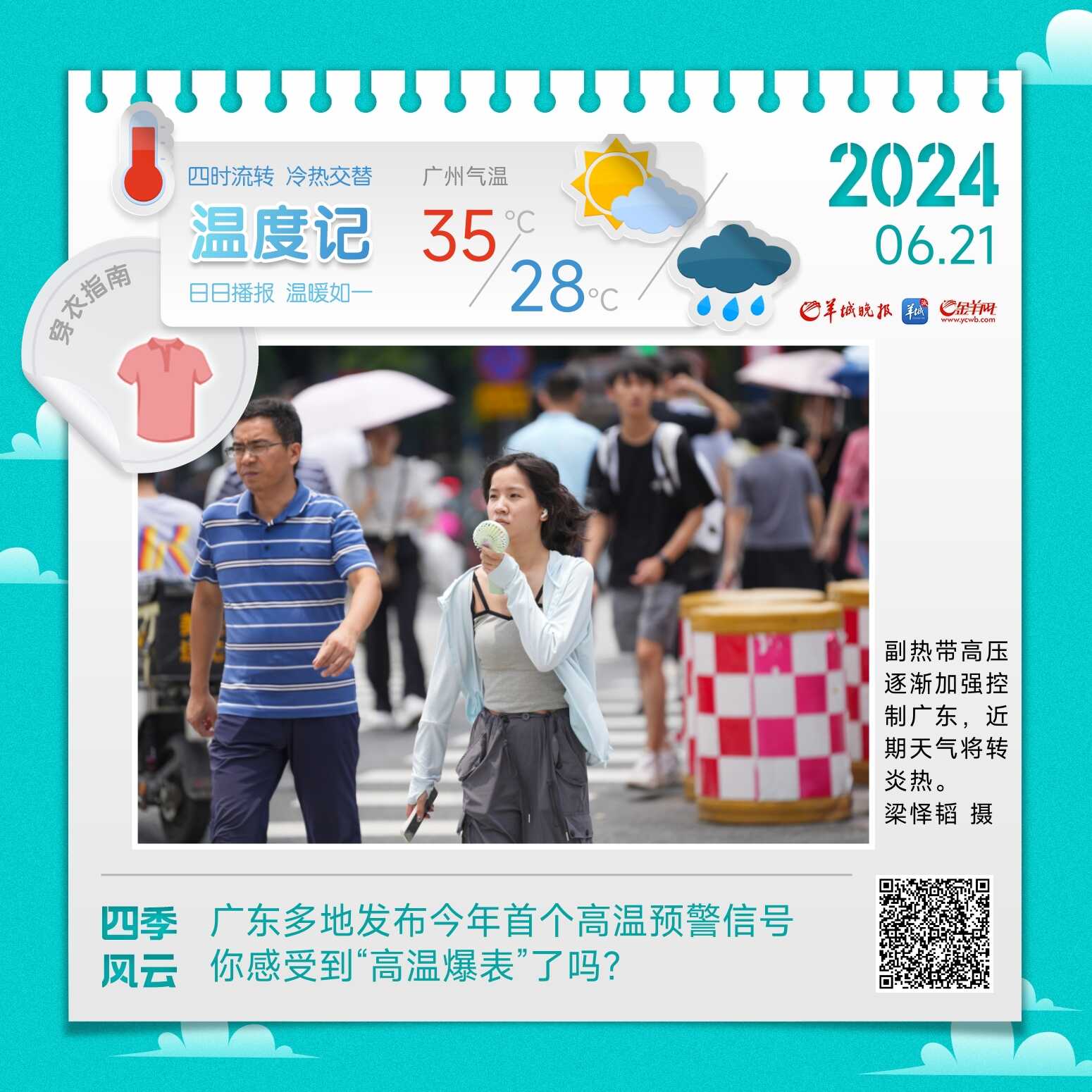 这几天,随着雨水的减少,广东的气温开始蹭蹭往上升。6月20日,全省气温统一在30℃+,又是烤“鸡腿”的一天。广州、中山、云浮、佛山、惠州、梅州、江门、清远、珠海、肇庆等多地发布了今年首个高温预警信号。你感受到“高温爆表”了吗?