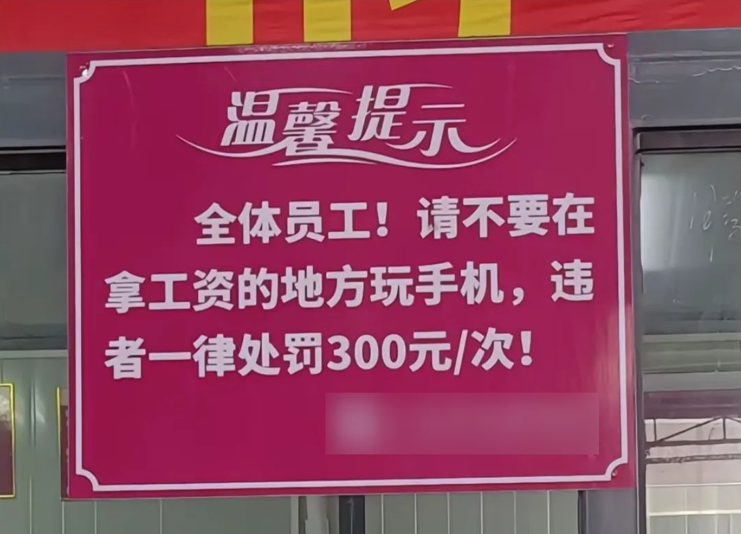 “全体员工!请不要在拿工资的地方玩手机,违者一律处罚300元/次!”