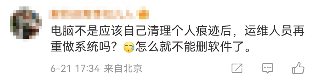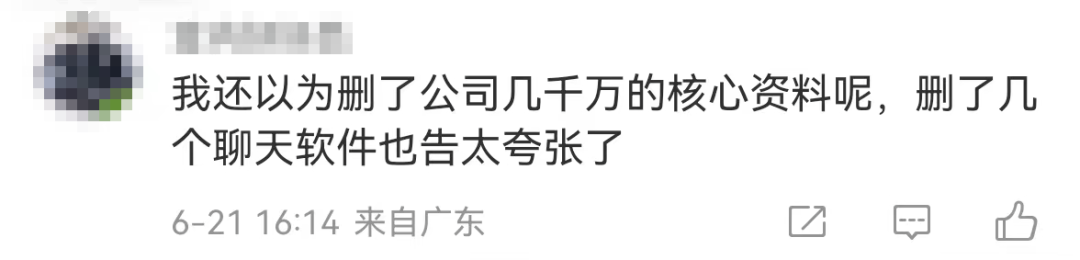据了解,女孩小蒋于2023年毕业,刚进入社会参加工作不久。“太离谱了!我只是把QQ音乐、QQ、微信、谷歌浏览器、百度网盘卸载了,领导说对公司造成了不良的影响。”小蒋告诉央视网《新闻+》记者,因为办公室电脑内存太小运行卡顿,删除“QQ”“微信”等内存占用比较大的软件是想让电脑运行得更快。