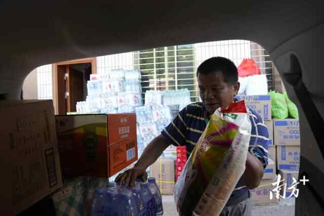 大新村村委会门口,摆放了不少矿泉水、面包、零食等物资。道路修通后,此前乘坐直升机进入大新村、完成任务的救援人员也得以坐车去到下一个任务点。