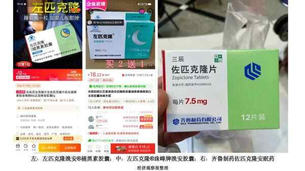 这个问题产生的原因在于,两款产品的名字中均有“左匹克隆”的字眼。据记者了解,安眠药中有一种常见品类,通用名字叫“佐匹克隆”,这类药物只能由医生开具处方在医院药房内取得,流通受到严格管制。