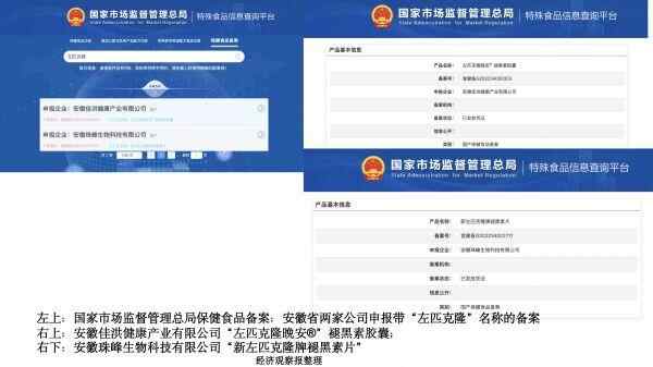 这两家公司拿到备案凭证的时间都是2022年。按照《保健食品注册与备案管理办法》规定,适用于备案制的“左匹克隆”保健品由省级市场监督管理部门负责备案管理,由市、县级市场监督管理部门负责监管。