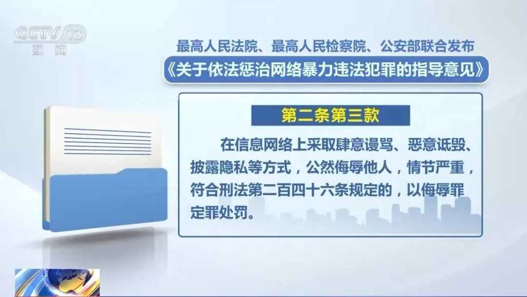 在最高人民法院、最高人民检察院、公安部联合发布的《关于依法惩治网络暴力违法犯罪的指导意见》中,第二条第三款指出,在信息网络上采取肆意谩骂、恶意诋毁、披露隐私等方式,公然侮辱他人,情节严重,符合刑法第二百四十六条规定的,以侮辱罪定罪处罚。