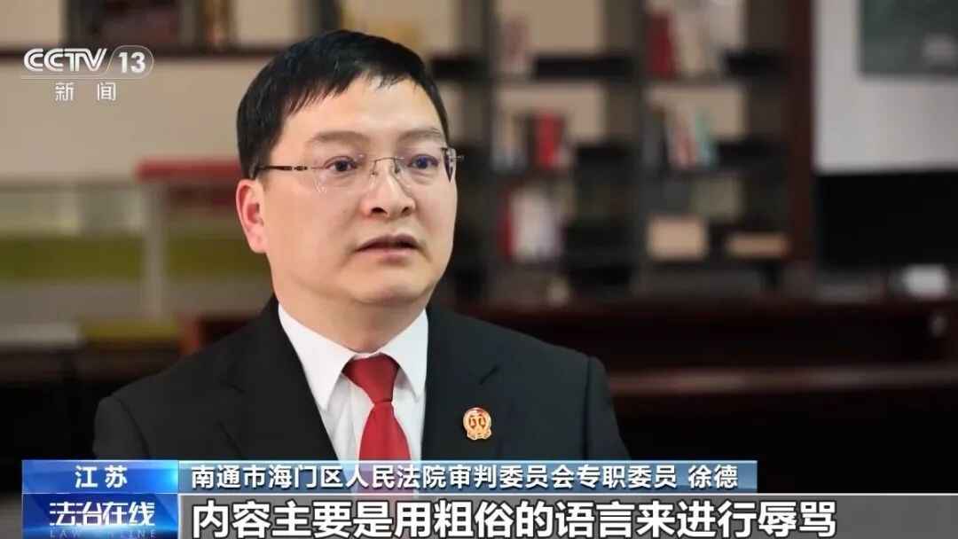 江苏省南通市海门区人民法院审判委员会专职委员徐德:“他就是用本地方言来逃避监管,内容主要是用粗俗的语言来进行辱骂,也没有具体的事,就是纯粹进行辱骂,就是贬低他人人格。”