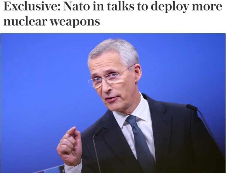 北约秘书长斯托尔滕贝格本月12日在布鲁塞尔宣称,北约内部正在探讨部署更多核武器,将其从仓库中取出并置于“待命状态”。