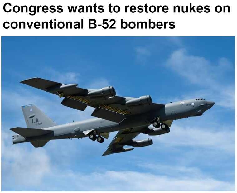 据美国“防务新闻”网站近日报道,美国国会正在推动一项新法案,旨在恢复数十架B-52H轰炸机的战略核打击能力。