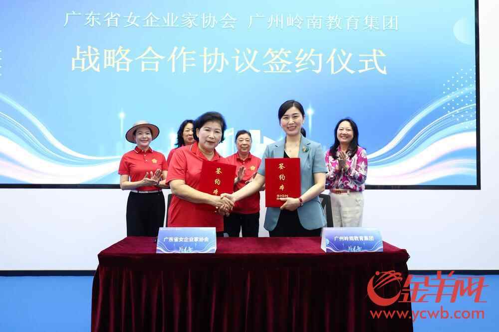 最后,广东省女企业家协会与广州岭南教育集团签订战略框架协议,双方将本着“资源共享、优势互补、责任共担、利益共享”的原则,充分发挥学校和协会双方优势,助力毕业生拓宽实习就业渠道,同时,为促进会员企业建设,产业升级和事业发展,实现校企人才培养和双方深度合作交流。