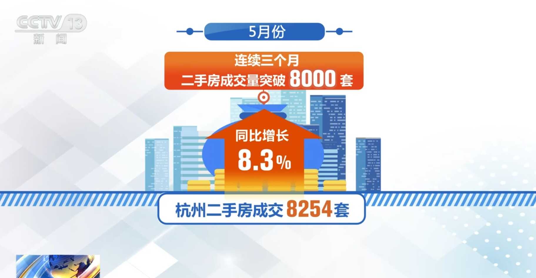 相关中介机构统计数据显示,5月份,杭州二手房成交8254套,同比增长8.3%,连续三个月二手房成交量突破8000套。