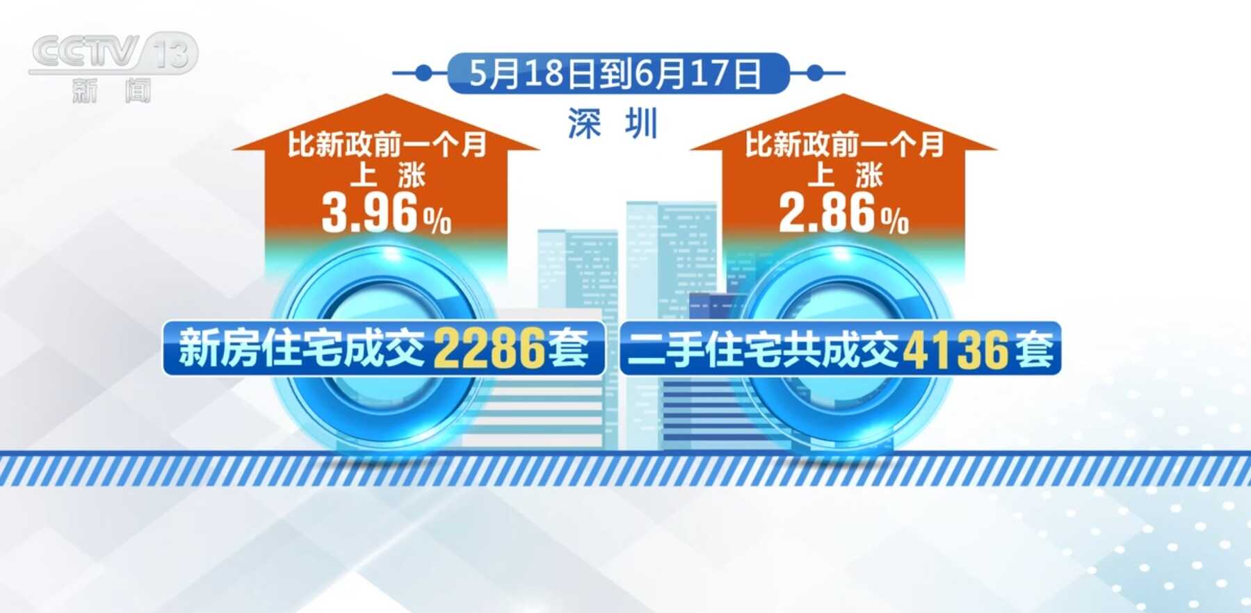根据相关统计数据显示,5月18日到6月17日,深圳新房住宅成交2286套,比新政前一个月上涨3.96%;二手住宅共成交4136套,比新政前一个月上涨2.86%。