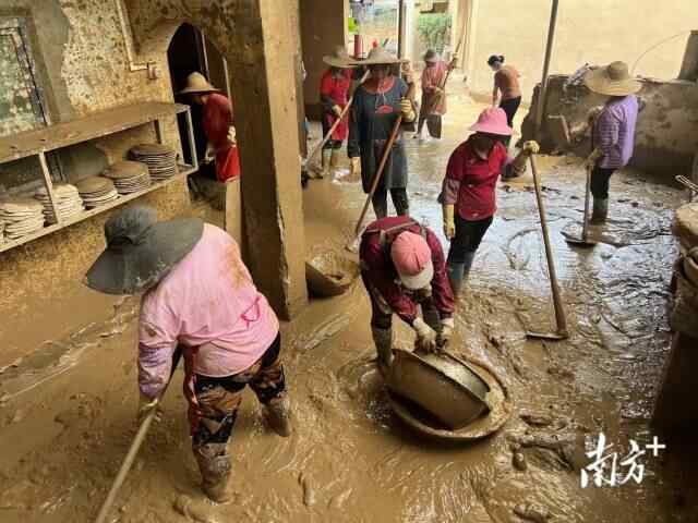 22日午间的烈日灼人,在泥潭中挪步备感吃力,但农家乐内的志愿者们却忙得热火朝天,拿着铲子、水管清理淤泥。他们说,要趁着光线好多干些,入夜后进度就得慢下来。