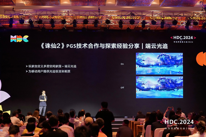 完美世界《诛仙2》引擎负责人柴毅进行了PGS技术合作与探索分享。他提到,PGS 2.0为我们提供了高效的全链路开发工具和能力,《诛仙2》不但接入了超帧、超分、HiSmartPerf等性能调优技术和工具,还应用了创造性的云渲染技术,利用云侧算力为端侧提供高阶光照计算,支持超过每秒10亿条光线实时渲染,既实现把PC级光线追踪画质带入手机,又能保证游戏高性能流畅运行,打造更沉浸真实游戏体验。