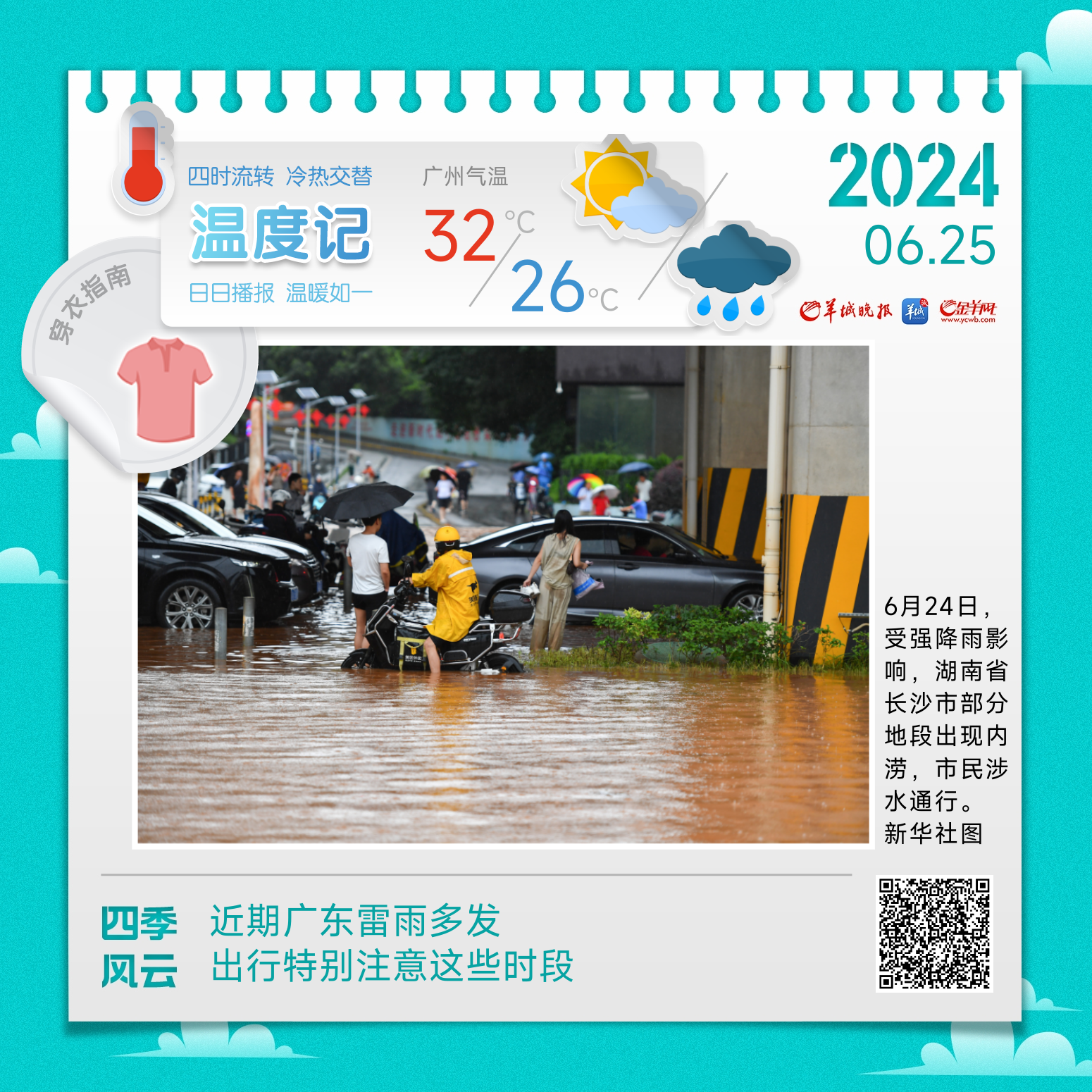 @广州天气预计,受季风气流影响,25-26日降水频繁,有大雨局部暴雨,并伴有短时强降水、短时大风、雷电等强对流天气,25日凌晨至早晨以及午后是雨水易发时段。