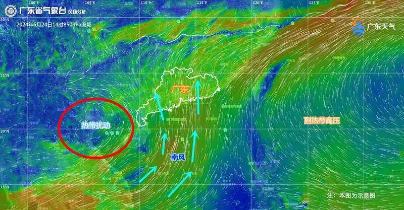 预计未来几天,广东省东侧有副高控场,西侧有热带扰动转圈圈,这种“东高西低”的配置有利于南风上岸,雷雨活跃。并且雷雨面散点强,既有季风夜雨性质,也有热力抬升来打配合,降水主要集中在上班和下班时段。