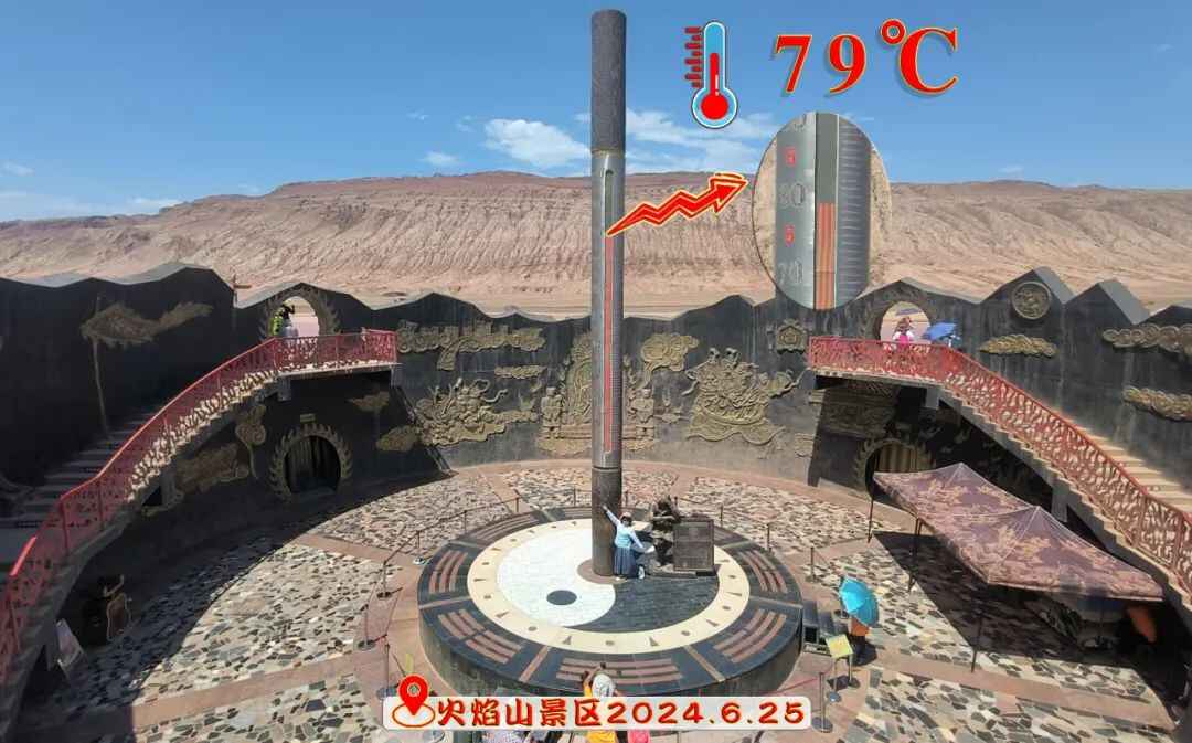 电视剧《西游记》中,唐僧师徒过火焰山遭遇高温,不得不借芭蕉扇灭火的剧情让人印象深刻。现实的火焰山到底有多热?近日,位于新疆吐鲁番的火焰山景区发布了一段视频:该景区高高耸立着金箍棒形状的温度计,6月23日下午3时35分,金箍棒温度计测出了高达81℃的高温。