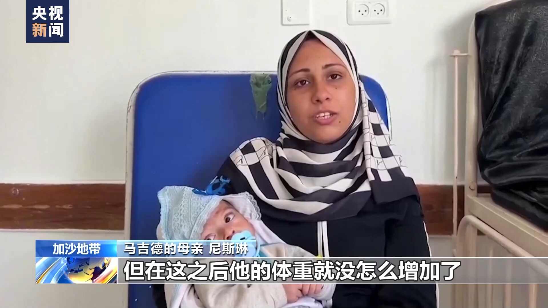 马吉德的母亲 尼斯琳:我刚生下他的时候,他有3.5公斤重,当时他非常健康。但在这之后他的体重就没怎么增加了,他现在的体重是3.8公斤,几乎没增加什么体重,而他现在已经七个多月大了。