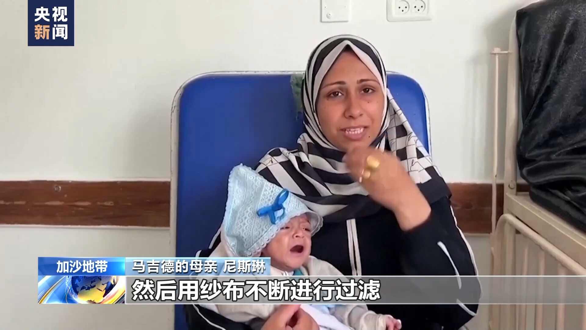 马吉德的母亲 尼斯琳:我们很难弄到干净水来冲奶粉。没有干净的水可以用,以至于我们会收集雨水,然后用纱布不断进行过滤,消毒后喂给我的儿子,因为我们没有干净的水。