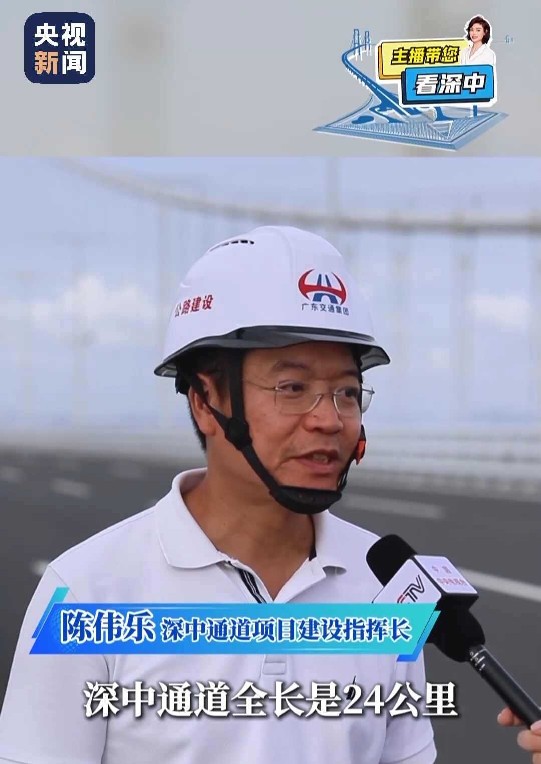 深中通道项目建设指挥长 陈伟乐:深中通道全长24公里双向8车道,是集“桥-岛-隧-水下互通”为一体的“超级工程”,是世界上综合建设难度最高的跨海通道工程之一。