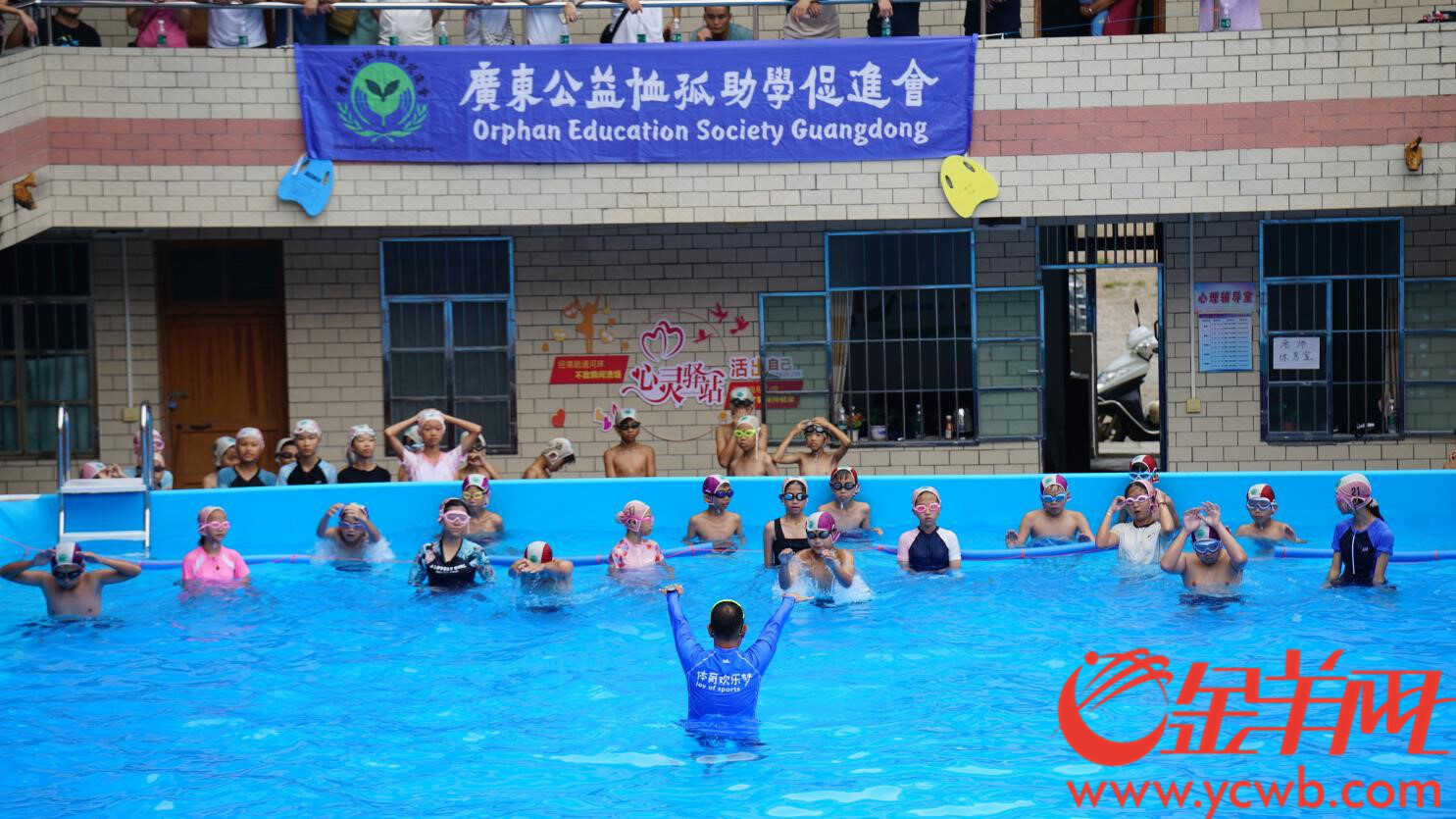 今年5月,一群专业的游泳教练来到茂名市信宜市思贺镇、云浮市郁南县千官镇。这群教练中,既有专业志愿者,也有高校的学生志愿者团队。思贺中心小学的四年级学生、千官镇中心小学的五年级学生都在水里跟着教练们“玩”起来。