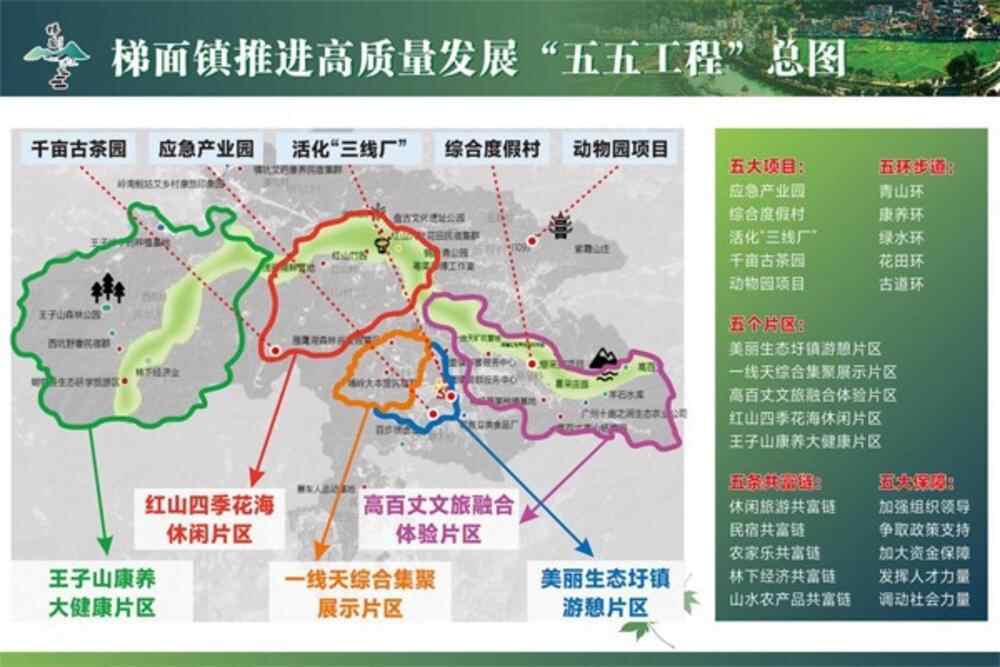 2023年以来,梯面镇锚定“一二三四五”发展思路,以“五五工程”为抓手,推动典型镇、全域典型村活力竞相迸发,一年来,先后获评“中华环境优秀奖”“广东省乡村治理示范镇”“广东省休闲农业与乡村旅游示范镇”“广东省2023年信访工作示范乡镇”“广州市2023年度示范圩镇”,红山村入选“广东首批乡村振兴示范村”创建名单。
