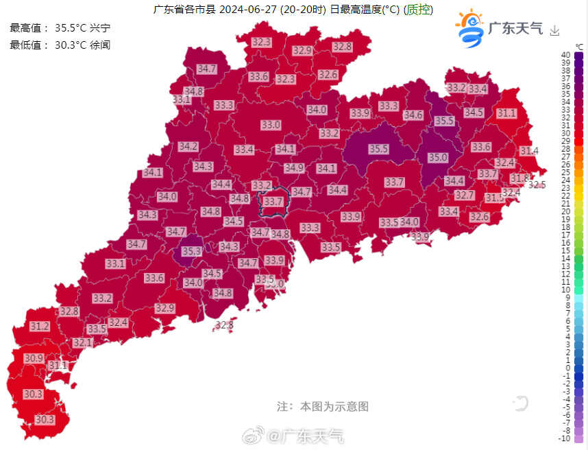 27日广东各市县最高温度显示,兴宁以35.5℃夺全省第一。虽然气温还不算太高,但由于空气相对湿度普遍在60%以上,体感温度多在35℃以上,像广州体感温度能到38℃左右,深圳达到36℃,闷热难耐使人直冒汗。