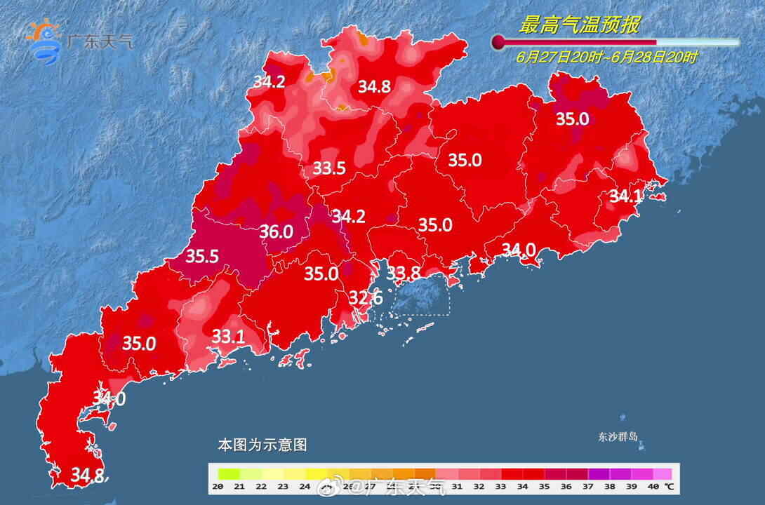 @广东天气预计,27日广东大部气温逐渐上升,南部市县仍多雷雨,局部有暴雨;28日-29日高温范围继续扩大,中北部市县35~36℃。
