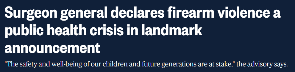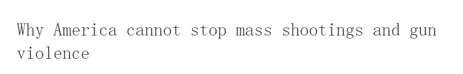 中国日报网6月28日电 据美国全国广播公司(NBC News)网站报道,当地时间6月25日,美国卫生局局长维维克·穆西(Dr. Vivek Murthy)在声明中宣布枪支暴力为美国的公共卫生危机,并警告称“枪支暴力对我们国家的健康和福祉构成了极大的威胁”,造成了严重的身心伤害。