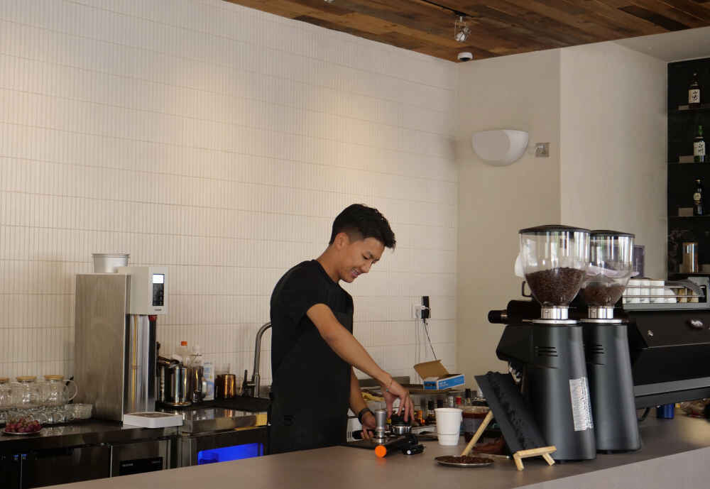 拉巴旦增在店内制作咖啡。(卓玛 摄)