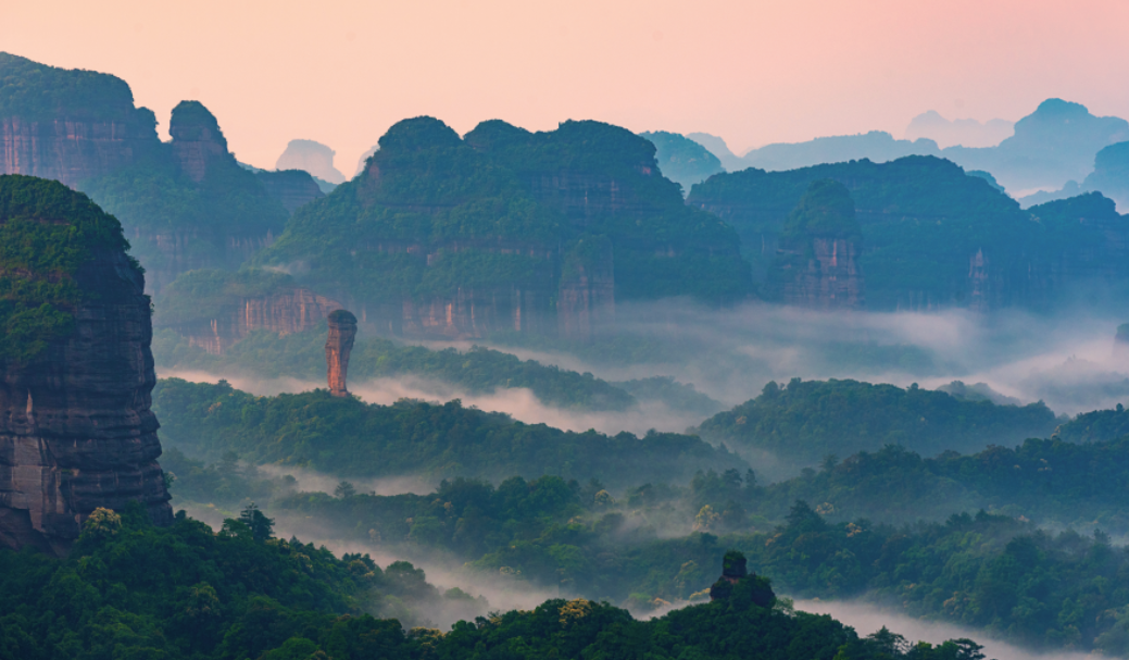 韶关坐拥广东第一峰石坑崆、仁化丹霞山、乐昌金鸡岭、九峰、乳源云门山、翁源东华山、新丰云髻山、广东第一险峰“K2”始兴龙斗峰,山山是景,景景连绵。