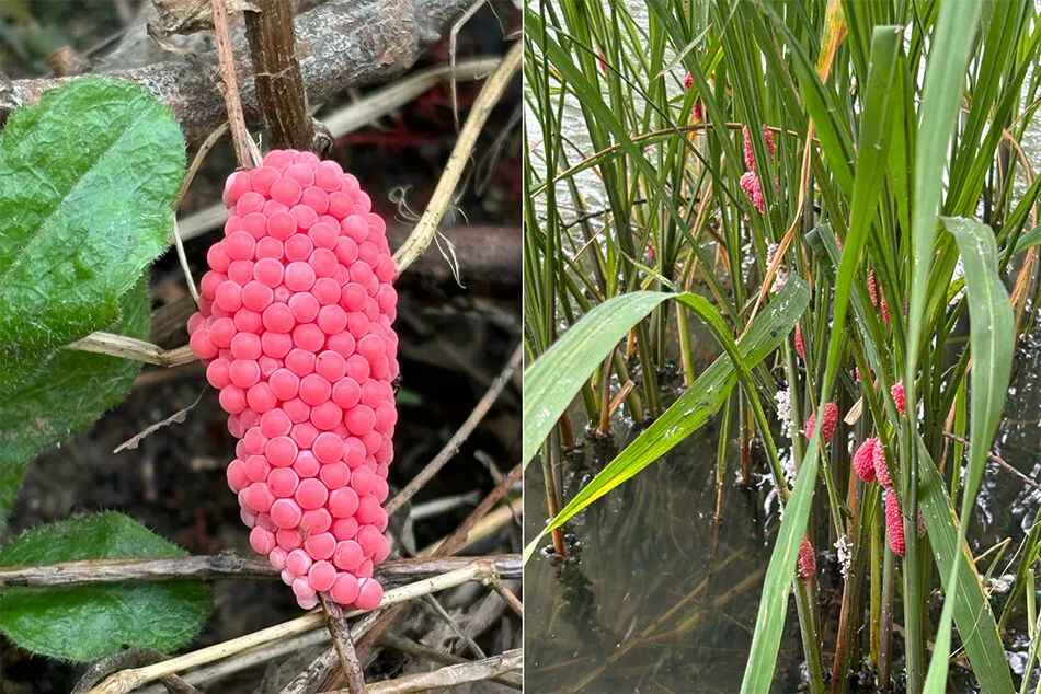 福寿螺的卵是鲜艳的红色或粉红色。